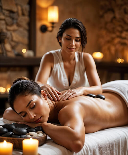 Experience the warmth of volcanic stones placed on key points to release tension and promote deep relaxation.